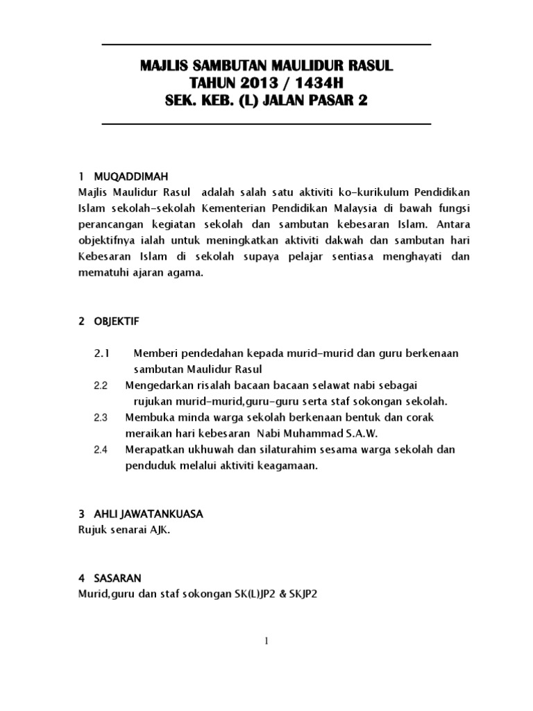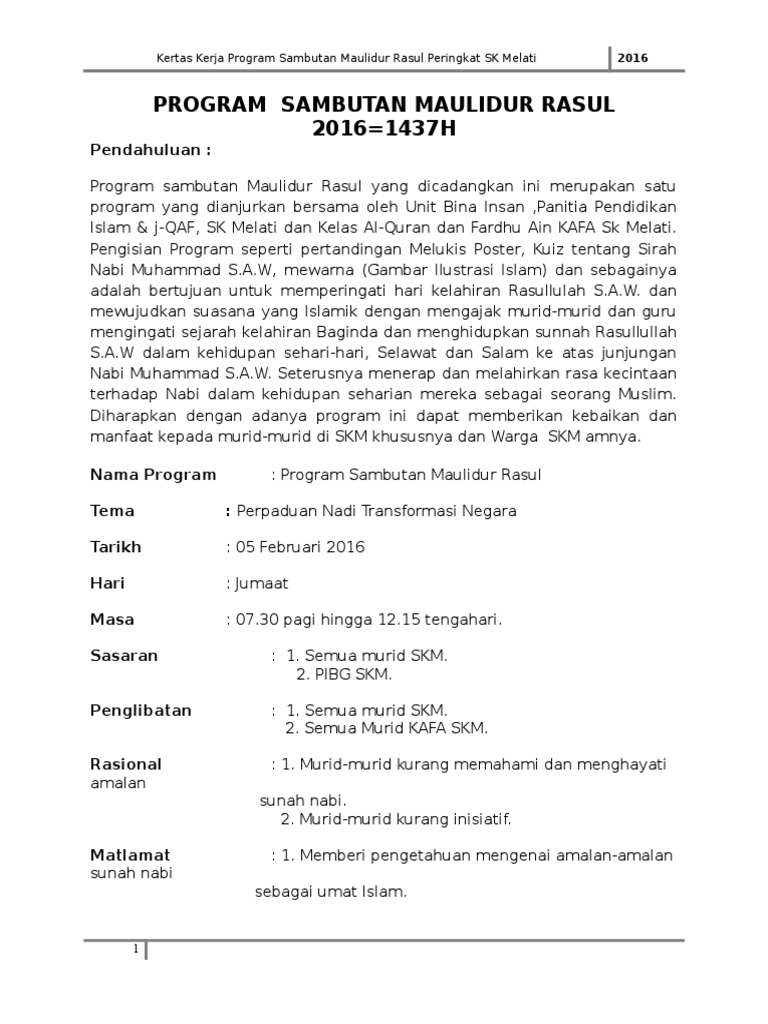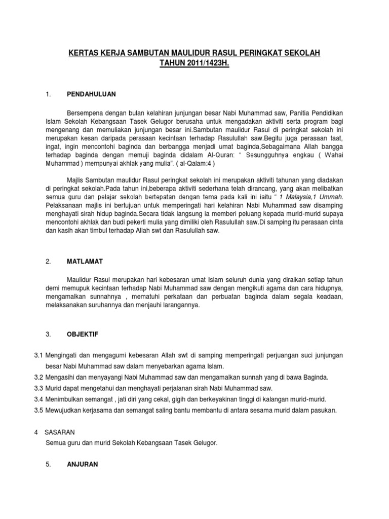 Kertas Kerja Sambutan Maulidur Rasul Peringkat Sekolah Pdf